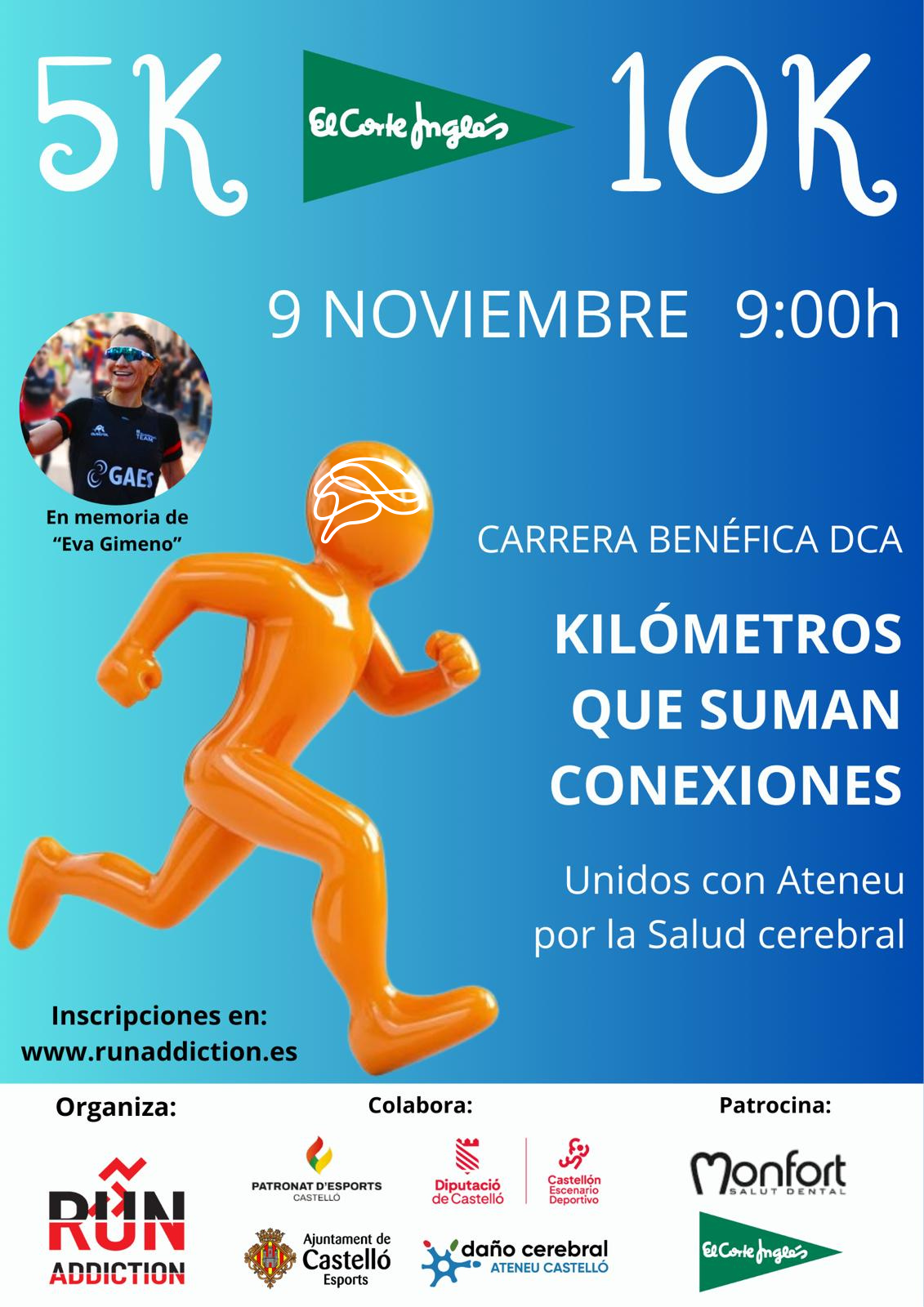 Castellano Nuestra entidad federada Daño Cerebral Ateneu Castellón estará presente el próximo 9 de noviembre en la @5k10kelcorteingles, organizada por nuestros amigos de @runaddictioncastellon. ¡Las inscripciones ya están abiertas! Anímate a poner a prueba tu velocidad y colabora con @ateneudca. También puedes colaborar adquiriendo tu dorsal solidario y luciendo la misma camiseta que el resto de participantes.