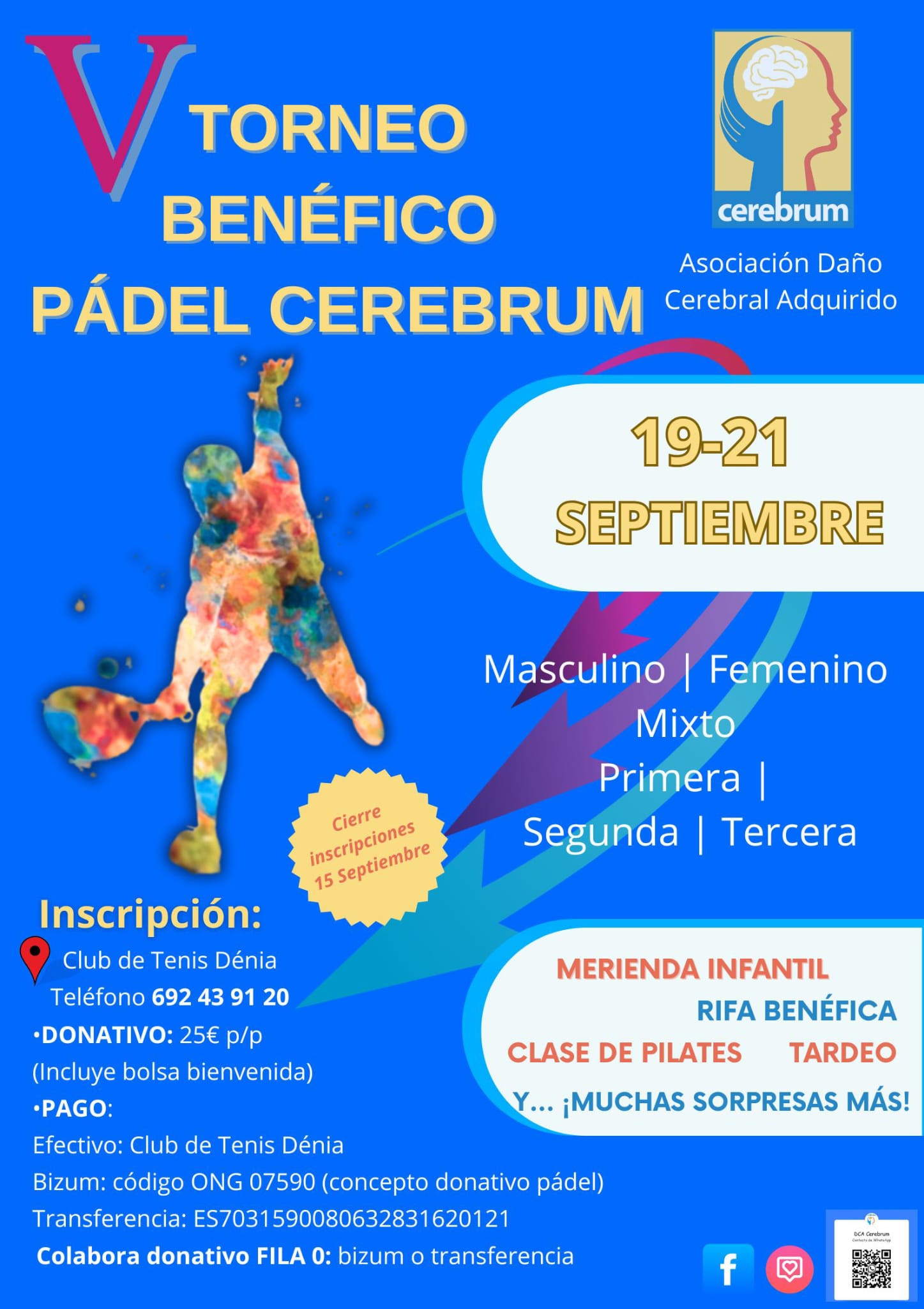 Del 19 al 21 de septiembre, nuestra entidad federada Cerebrum celebrará en Dénia su V Torneo Benéfico de Pádel.Un evento solidario en el que el deporte y la colaboración se unen por una buena causa. Contamos contigo. Tu participación es muy importante. Del 19 al 21 de setembre, la nostra